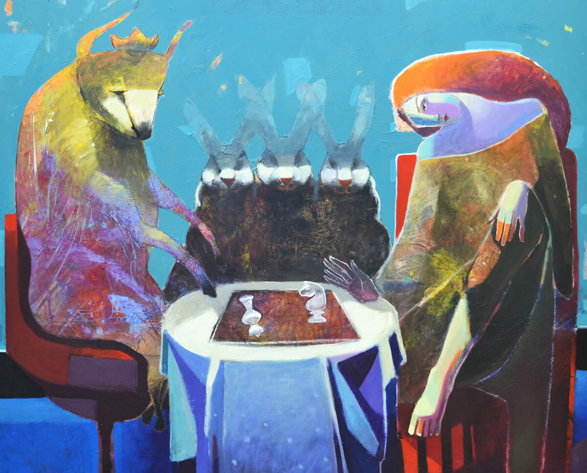 Adham Badawy was born in Sohag in 1988, graduated from the Faculty of Fine Arts in Luxor in 2010, participates in the art movement since 2010, he participated in many groups and international exhibitions, including the new legacy contemporary art of Egypt – group exhibition, He has also participated in some events and festivals. Adham is fluent in using oil colors in his paintings, full of the spirit of delight and joy, despite the sharp lines that characterize his works. The rise of Adham in Upper Egypt has a clear impact on the formation of his artistic personality and reflection in his paintings, where the mix between the rural life and the mountain nature surrounding,