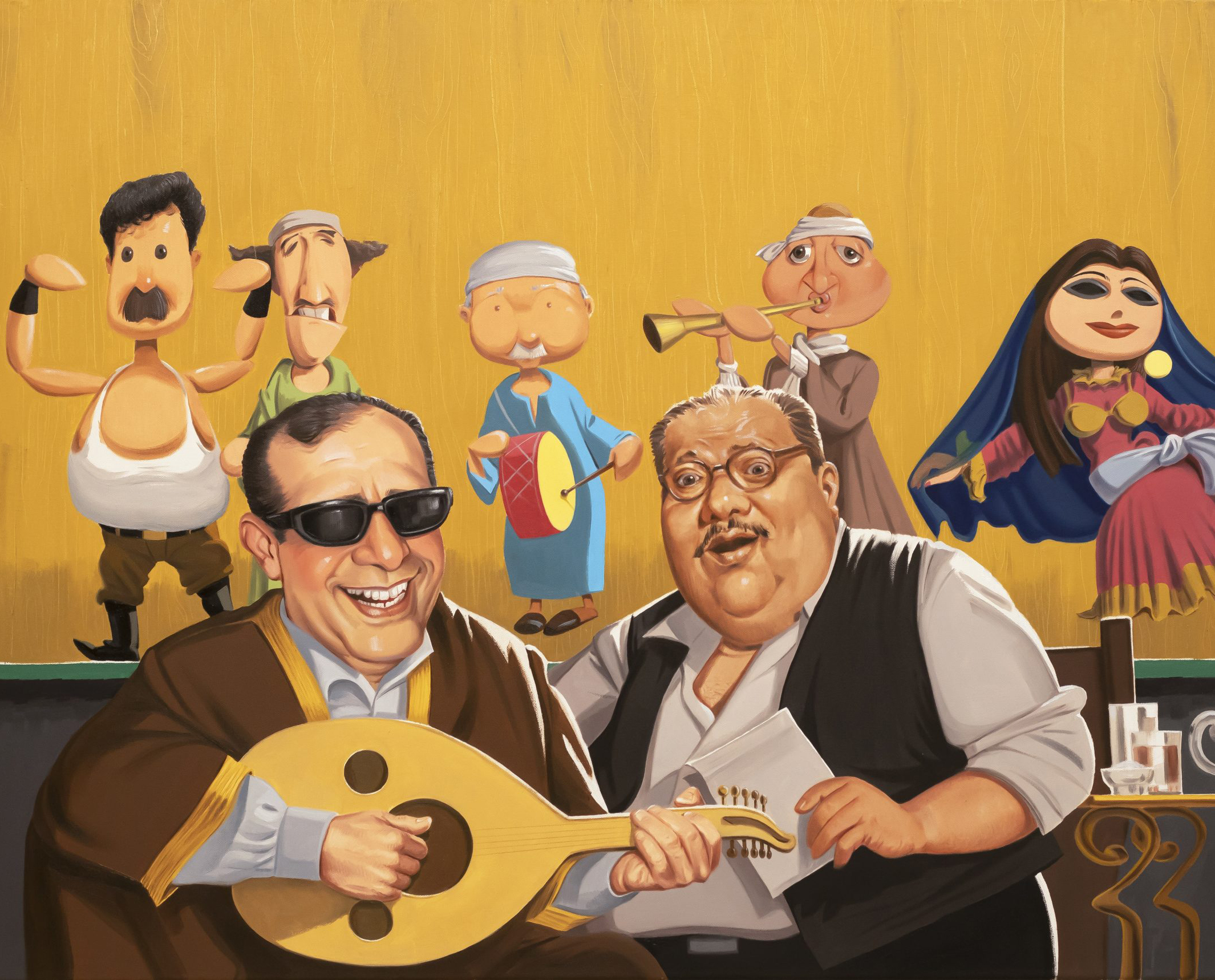 The exhibition includes a collection of paintings by a number of icons, including the international writer Naguib Mahfouz, the artist Naguib Al-Rihani, Salah Jahin, Tahya Carioca, the people’s artist Sayed Darwish, Salah Jahin and Sayed Makkawi and many other Egyptian Characters.