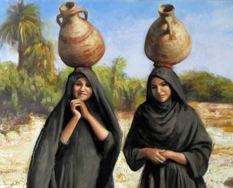 A poor Family sitting against a wall on which is written “El Hamdolellak”, a stunningly beautiful young lady imerging from a lotus pond, on innoscent child from Siwa, a vigorous Nubian Youth,