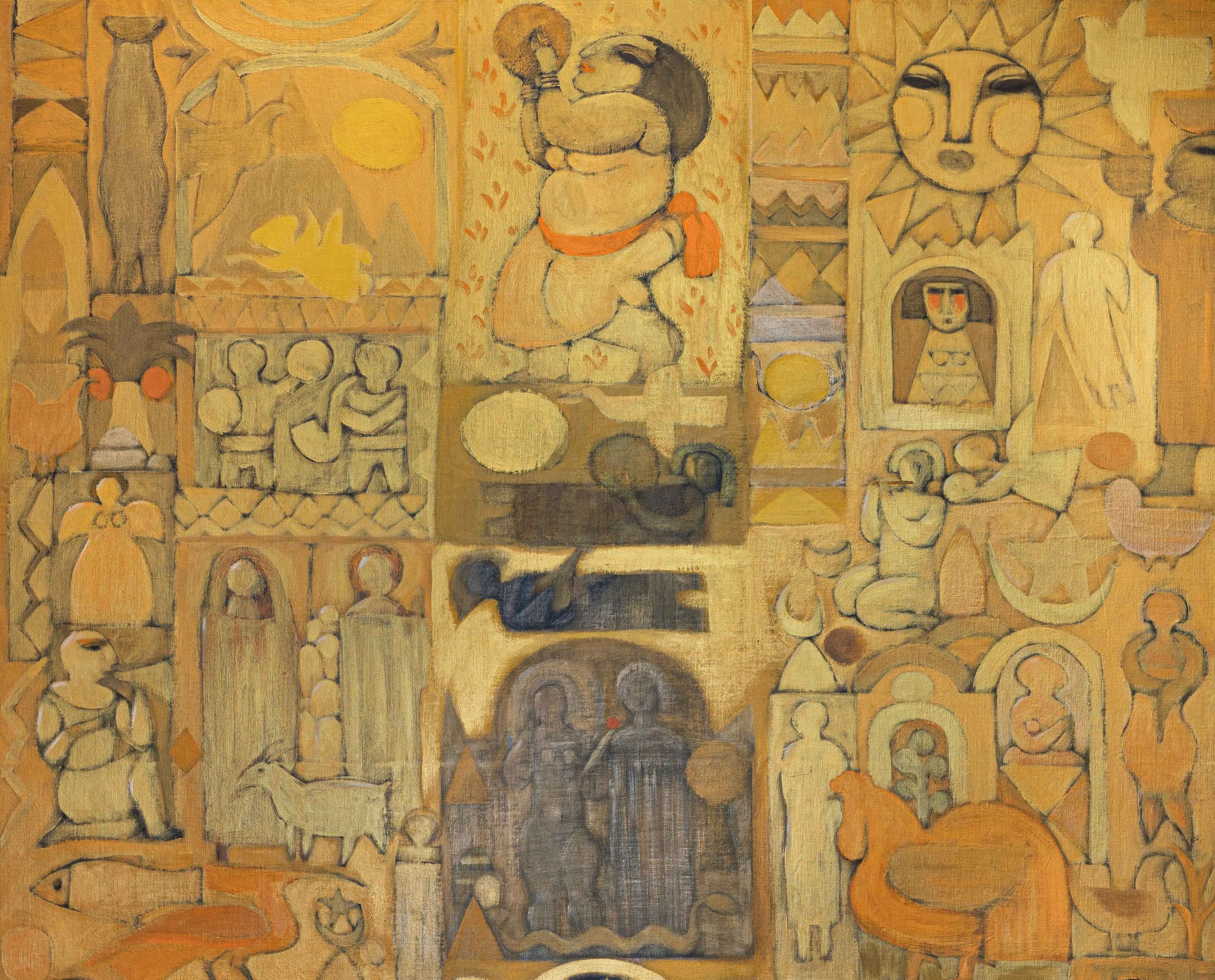 While his paintings address profound themes such as culture, consciousness, and mythology, they retain an essence of simplicity and joy, inviting viewers into a colorful exploration of the ancient and the contemporary.