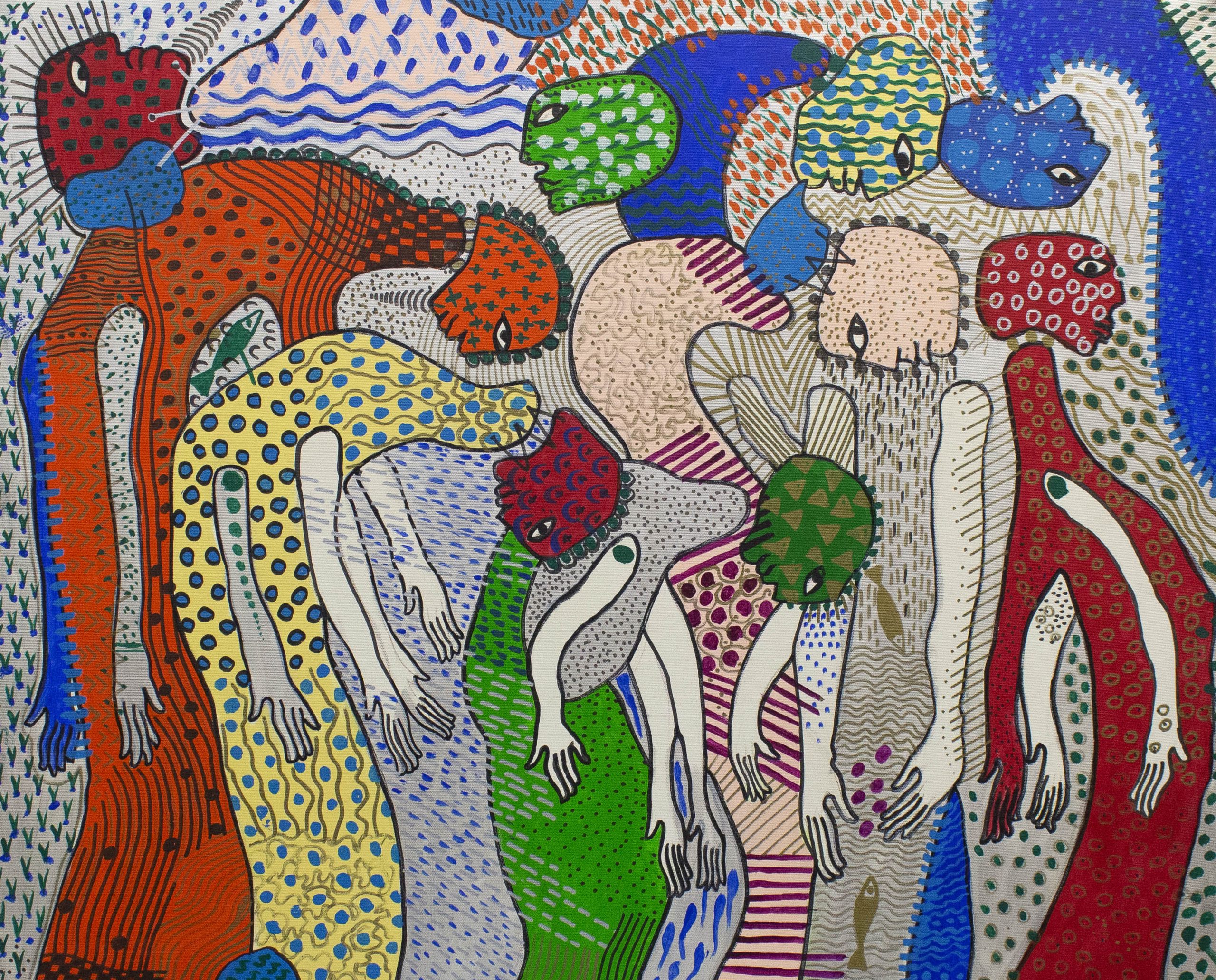 The miracle of Walid Aouni. He is a comprehensive expressive artist. He is a dancer, choreographer, and theater director, a painter and a musician. Aouni entered the heart of the Egyptian theatrical and artistic movement, breaking the closed circles, breaking the organized hierarchy, revolting against stereotyped awareness, and making expression in the language of the body on the theatrical level a gateway to purifying the self and understanding the soul. However, the hidden side of Walid Aouni is that he is a painter with a unique style. He draws spaces in the same rejecting context that we knew him on stage. It is difficult to classify him within the framework of a trend or current in art, but even though he is a professional artist, he gives unparalleled respect and loyalty to the spontaneous contemplative ability, and he intends to dive into the artistic self until he touches it, not because that root is the summary of what he was born with but rather because it is the raw material for the action of instinct. We can see Walid Aouni as a symbolic, metaphysical, and surrealist artist, but that will still not be enough, that is, for him to mortgage himself for those moments. “Automatism,” which brings the stream of the unconscious into the space of the soul, He paints as if he were under a controlling will, and even as if he were a per formative mediator for the ferment of the unconscious. When he leaves the space of drawing, this is an indication that he has just returned to the “daily” and to the state of wakefulness.